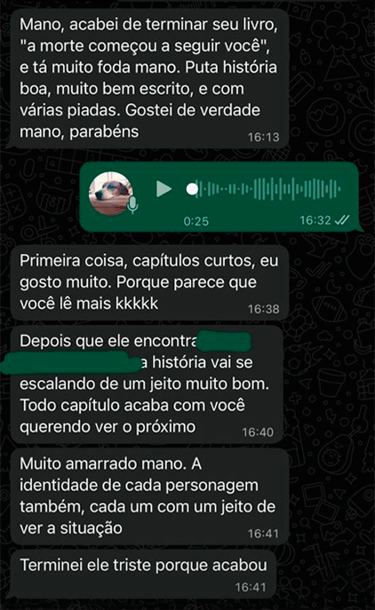 No livro “A MORTE COMEÇOU A SEGUIR VOCÊ", o designer Ícaro, de trinta anos anos, leva uma vida aparentemente normal, mas tudo muda quando um misterioso perfil no Instagram @avidadeicaro começa a segui-lo. Curioso como todo ser humano, Ícaro se interessa mas essa atenção se transforma em uma inquietante realidade quando todas as postagens desse perfil se materializam em sua vida, desafiando a lógica e a sanidade.